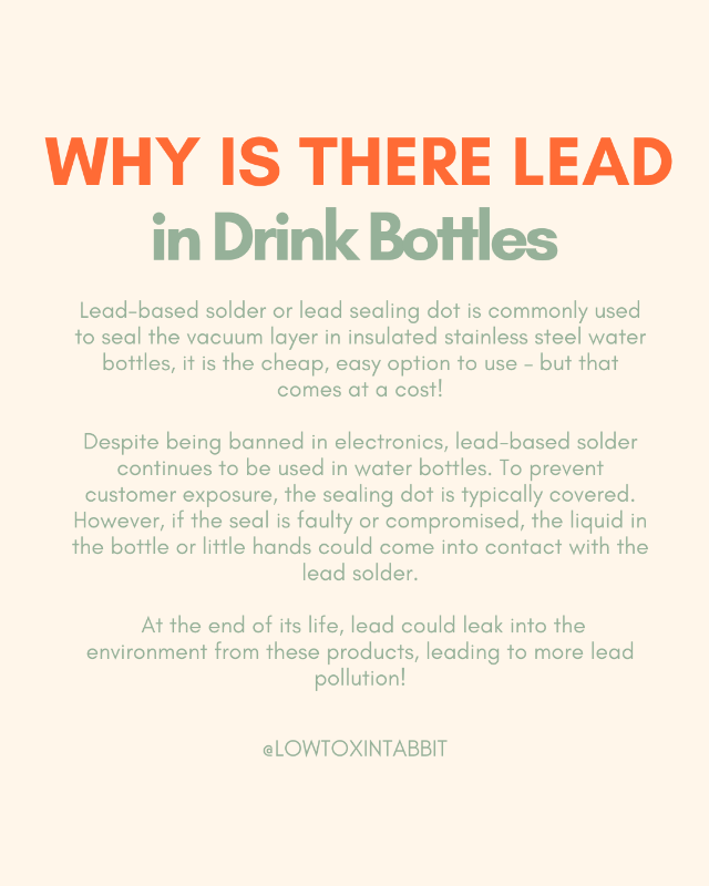 Manufacturers use solder to seal the vacuum chamber, and traditionally, many have used lead-based solder because it's cheap and effective. The problem is that this lead dot sits right at the bottom of your bottle, where it can potentially leach into your drinks, especially if the bottle is damaged, scratched on the inside, or exposed to acidic beverages.